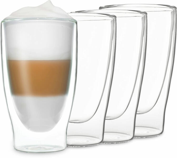 A Feelino by Klarstein luxus DUOS pohár kézzel készült, és elegáns dizájnjával gazdagítja lakókörnyezetét. A dupla üvegréteg a hideg italokat tovább tartja hidegen, a forró italokat pedig tovább forrón. Ez a vonzó pohár eszpresszóhoz, teához, röviditalokhoz, aperitifekhez vagy desszertekhez boroszilikát üvegből készült, rendkívül tartós és hőálló: karcálló, nag