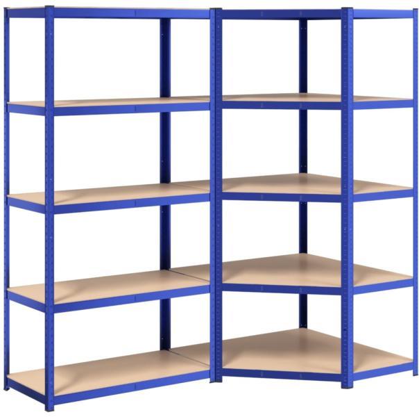vidaXL 2 db 5 szintes kék acél és szerelt fa polc Ezek a tárolópolcok kiválóak háztartási és kereskedelmi tárolásra is, bőséges helyet biztosítva az összes tárgy rendezett tarolásához. Masszív anyag: A tárolóállvány acélvázzal és szerelt fából készült lapokkal rendelkezik. Az acélvázak szilárdságot és stabilitást garantálnak, míg a szerelt fa szilárdságot,
