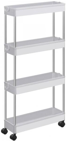 A praktikus, gurulós fém polc CART 13,5x42x83 cm-es méretekkel, fehér színben ideális megoldás otthona rendszerezésére. A 4 tágas polc rengeteg helyet biztosít az élelmiszerek, konyhai eszközök vagy kisebb dekorációk tárolására. A görgők lehetővé teszik a könnyű mozgást , így a polcot nemcsak a konyhában, hanem a fürdőszobában, a dolgozószobában vagy a nappaliban i
