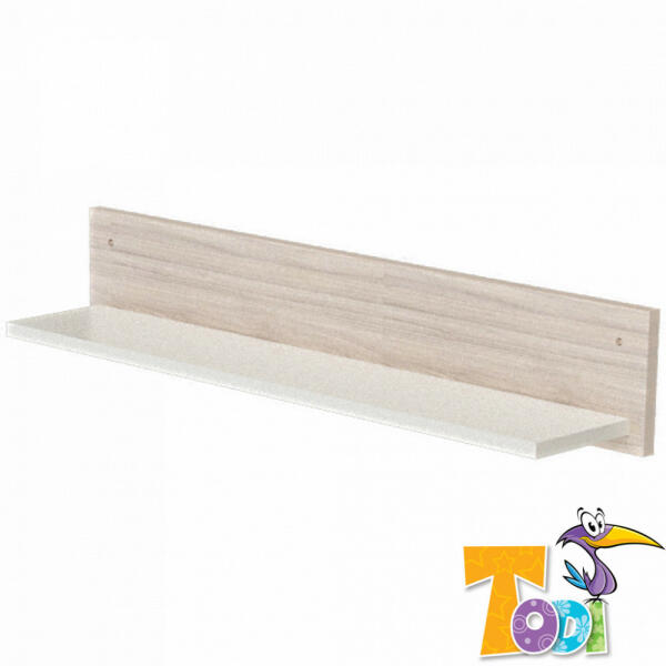 Todi Teddy fali polc - szil/vanília A bútortestek és élei 2 mm vastag Pvc-vel (un. : Abs) kerülnek élzárásra, melyek a hagyományos élfóliákhoz képest sokkal magasabb élettartamot biztosítanak. A polc megfelel az Európai Unió és a Magyar Szabványügyi Testület által előírt szigorú szabványoknak. Magyar termék! Csomag mérete: 920*180*40 mm Rendelési idő: kb. 5-6 hét