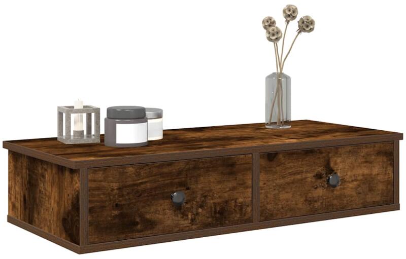 Ez a fiókos falipolc dekoratív és praktikus kiegészítője lehet otthonának. Stabil és tartós anyag: A szerelt fa tartós és stabil anyag sima felülettel, amely ellenáll a nedvességnek, a vetemedésnek és a hasadásnak, így megbízható választás különféle célokhoz. Bőséges tárolóhely: A fali szekrény praktikus tárolóhelyet kínál, hogy különféle napi szükségleteit