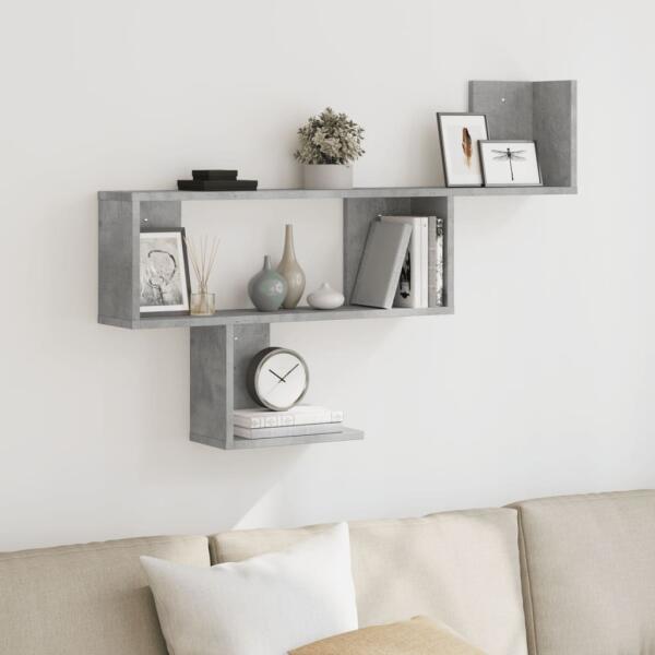 vidaXL betonszürke forgácslap fali polc 102 x 30 x 29 cm Tartsa alapvető tárgyait rendezetten ezzel az elegáns és praktikus fali polccal. Ez a fali szekrény 6 polccal van ellátva, így elegendő tárolóhellyel rendelkezik. Teteje stabil felületet biztosít, amelyre könyveit vagy dísztárgyait helyezheti. Nedves ruhával könnyen tisztítható. Színe: betonszürke Anyaga: szerelt fa M