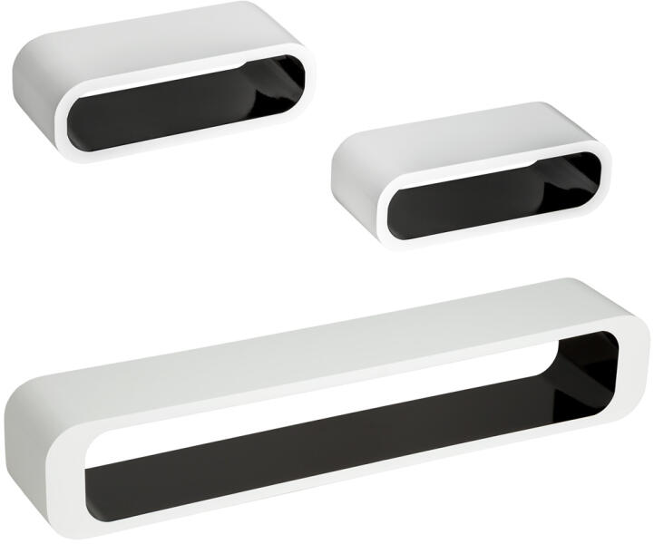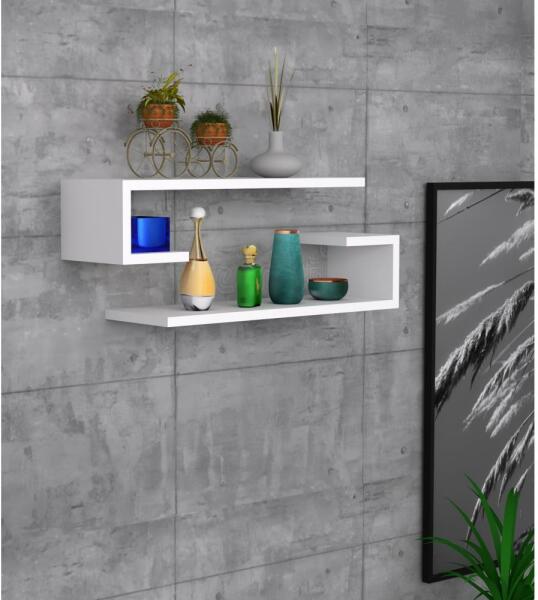 Két fali polcból álló szett egyszerű, modern dizájnnal. Tökéletesen illeszkedik minden otthonba. Alkalmas könyvek tárolására, dekorációk, virágok és még sok minden más megjelenítésére. Fehér színben tervezve. Anyagvastagság: 1,8 cm. Laminált forgácslapból készült. Maximális terhelhetőség: 4 kg.