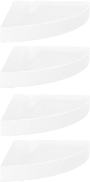 vidaXL 4 db magasfényű fehér MDF lebegő sarokpolc 25 x 25 x 3,8 cm Ez a 4 stílusos sarokpolcból álló szett tökéletes kedvenc könyvei, gyűjteményei, fényképei, díjai stb. bemutatására. Ez a minőségi méhsejt szerkezetű MDF-ből és erős fémből készült bemutatópolc stabil és tartós. A láthatatlan rögzítőrendszernek köszönhetően ez a fali polc könnyen felszerelhet