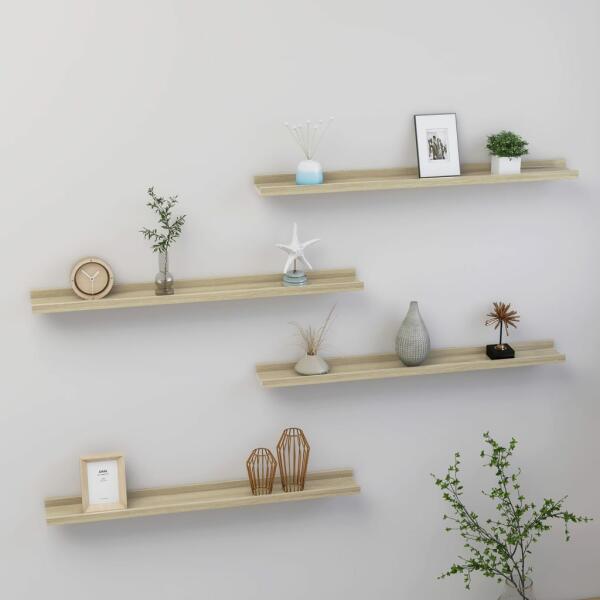 vidaXL 4 db sonoma-tölgy színű fali polc 80 x 9 x 3 cm Maximalizálja otthona tárolókapacitását, és varázsolja falát stílusossá ezekkel a praktikus és dekoratív fali polcokkal! A falra szerelhető polc MDF-ből készült, így erős és tartós. Tökéletes helyként szolgálhat olyan tárgyak tárolására, mint a szobanövények, könyvek, gyűjthető tárgyak, dísztárgyak stb. F