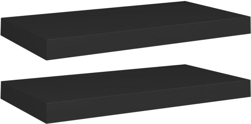 vidaXL 2 db fekete MDF lebegő fali polc 50 x 23 x 3,8 cm Ez a 2 stílusos fali polcból álló szett az otthona fókuszpontja lesz. A láthatatlan rögzítőrendszernek köszönhetően ez a fali polc könnyen felszerelhető, és tökéletes hely különböző tárgyak, például díjak, könyvek, gyűjtemények, dísztárgyak stb. elhelyezésére. Ez az állvány minőségi méhsejt szerkezetű M