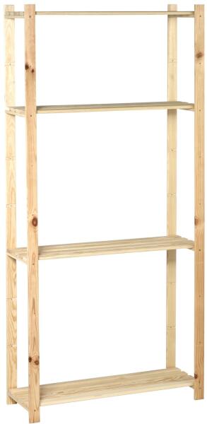 A polcos faállvány alkalmas további tárolóhely kialakítására és a háztartásban, pincében vagy műhelyben történő rendezett tárolásra. Anyaga FSC -tanúsítvánnyal rendelkező puhafából készült, és természetes megjelenés jellemzi. Univerzális, praktikus tárolási lehetőség A négy polc mindkét oldalról hozzáférhető, és rengeteg helyet kínál a legkülönfélébb