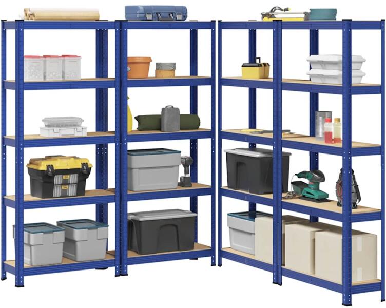 vidaXL 2 db 5 szintes kék acél és szerelt fa polc Ezek a tárolópolcok kiválóak háztartási és kereskedelmi tárolásra is, bőséges helyet biztosítva az összes tárgy rendezett tarolásához. Masszív anyag: A tárolóállvány acélvázzal és szerelt fából készült lapokkal rendelkezik. Az acélvázak szilárdságot és stabilitást garantálnak, míg a szerelt fa szilárdságot,