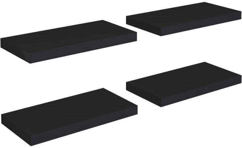 vidaXL 4 db fekete MDF lebegő fali polc 50 x 23 x 3,8 cm Ez a 4 stílusos fali polcból álló szett az otthona fókuszpontja lesz. A láthatatlan rögzítőrendszernek köszönhetően ez a fali polc könnyen felszerelhető, és tökéletes hely különböző tárgyak, például díjak, könyvek, gyűjtemények, dísztárgyak stb. elhelyezésére. Ez az állvány minőségi méhsejt szerkezetű M