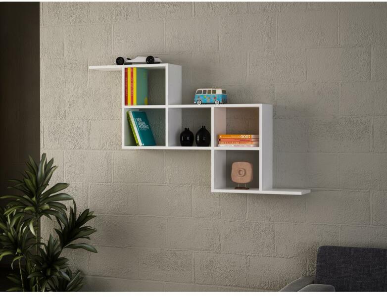 Fali polc modern stílusban. Tökéletesen illeszkedik minden otthonba. Könyvek tárolására, dekorációk, virágok és még sok minden más megjelenítésére alkalmas. Szín: fehér. Az anyagvastagság: 1,8 cm. Laminált forgácslapból készült. Maximum terhelhetőség: 4 kg.