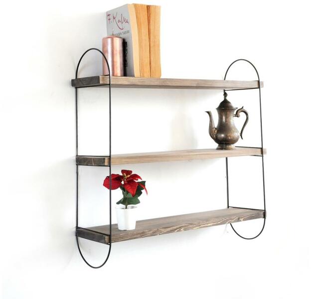 Fenyőfából készült fali polc. Egyszerű, modern stílusának köszönhetően bármilyen otthonba illik. Könyvek, dekorációk és még sok minden más bemutatására alkalmas. Fa és fekete fém kombinációja. Polcok száma: 3 db. Maximum terhelhetőség: 5 kg.