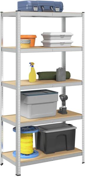 Ez a tárolópolc kiváló választás háztartási és kereskedelmi tárolásra is, bőséges helyet biztosítva az összes tárgy rendezett tarolásához. Erős anyag: A tárolóállvány acélvázzal és szerelt fából készült lapokkal rendelkezik. Az acélvázak szilárdságot és stabilitást garantálnak, míg a szerelt fa szilárdságot, stabilitást és nedvességállóságot biztosít.