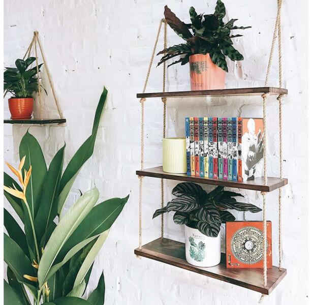 Fenyőfából készült kötél fali polc. Egyszerű, modern stílusának köszönhetően bármilyen otthonba illeszkedik. Alkalmas könyvek, dekorációk és még sok minden más megjelenítésére. Fa és kötél kombinációja. A polcok száma: 3. Polcok magassága: 40 cm. Maximum terhelhetőség: 4 kg.