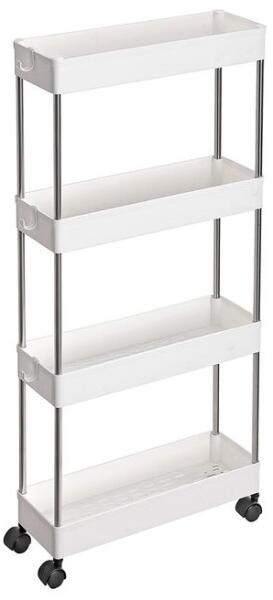 Kiváló megoldás minden szűk térbe, konyhába vagy fürdőszobába. Ez a 42 x 13,5 x 87 cm méretű tárolókocsi elfér a szűk helyeken a konyhában, a fürdőszobában, a hálószobában vagy a mosókonyhában, és segít a lehető legjobban kihasználni a helyet. A 4 sima forgó görgőnek köszönhetően a kocsit bárhová mozgathatja, ahová csak szüksége van rá, és a sarokban kialak