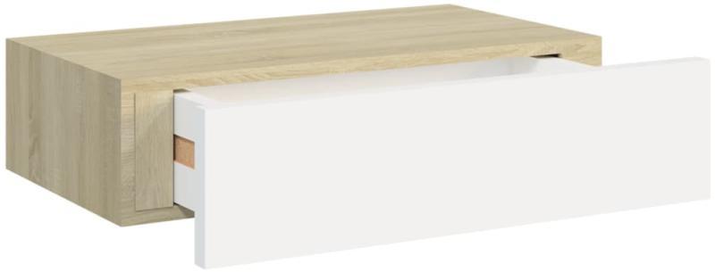 vidaXL tölgyszínű és fehér MDF fiókos fali polc 40 x 23,5 x 10 cm Vigyen egy csipetnyi elegáns bájt lakberendezésébe ezzel a kompakt fiókos polccal! Ez az MDF-ből és fémből készült lebegő polc tartós. A fiókos falra szerelhető polc bőséges helyet kínál képkeretek, gyűjteményi tárgyak, könyvek, játékok, apró növények stb. számára. Dizájnt és stílust kölcsön