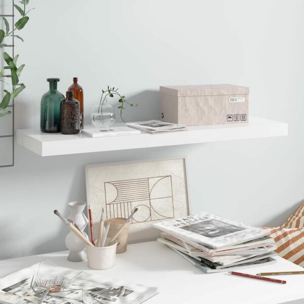 vidaXL magasfényű fehér MDF lebegő fali polc 80 x 23,5 x 3,8 cm Ez a stílusos fali polc az otthona fókuszpontja lesz. A láthatatlan rögzítőrendszernek köszönhetően ez a fali polc könnyen felszerelhető, és tökéletes hely különböző tárgyak, például díjak, könyvek, gyűjtemények, dísztárgyak stb. elhelyezésére. Ez az állvány minőségi méhsejt szerkezetű MDF-ből k