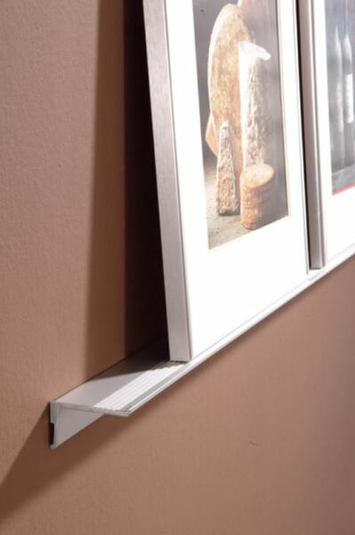 A Nielsen falipolca kreatív módot kínál a képek bemutatására – kiváló minőségű eloxált alumíniumból készült. A képek nincsenek felakasztva, csak a falnak dőlnek, egy 8 cm mély sín tartja. Ennek eredményeként a kép alsó szélei automatikusan azonos magasságba kerülnek – ez azt jelenti, hogy a különböző formátumok vonzóan jeleníthetők meg egymás mellett. Egy c