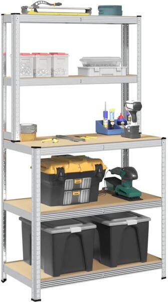 Ezek a polcokkal ellátott munkaasztal kiváló választás háztartási és kereskedelmi tárolásra is, bőséges helyet biztosítva az összes tárgy rendezett tarolásához. Erős anyag: A munkaasztal acélvázból és tervezett falapokból áll. Az acélkeretek garantálják a szilárdságot és a stabilitást, míg a tervezett fa szilárdságot, stabilitást és nedvességállóságot kíná