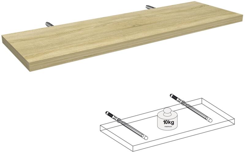 Laminált bútorlapból készült, sonoma tölgy színű, lebegő polc rejtett polctartóval. Mérete: 80 cm x 25 cm x 2,5 cm.