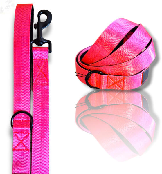 Ez a neon póráz ideális nagyobb méretű kutyák számára is. A karabínernagy teherbírású 290 kg a terhelhetősége, míg a dupla rétegű heveder és a szakadásmentes cérna hosszú élettartamot biztosítanak a terméknek. A neon szín és a szatén fény garantáltan feltűnővé tesznek. A póráz hossza150 cm és szélessége 2,5 cm így optimális kényelmet biztosít mind a kutyán