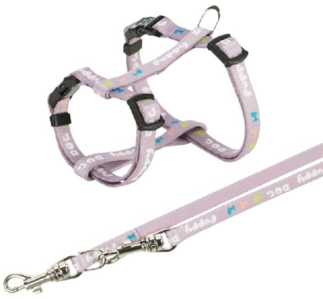 Trixie Hám pórázzal Junior & Puppy M–L: 27–45 cm/10 mm, 2m, világos lila A kényelmes, kölyök és fiatal kutyák számára készített Trixie hám és póráz szett könnyen fel- és levehető. A hevederszalagból készült nyak- és haspántok folyamatosan, a póráz 3 pontban állíthatók. Ennek köszönhetően garantáltan megtalálja kedvence számára a megfelelő méretet. Há
