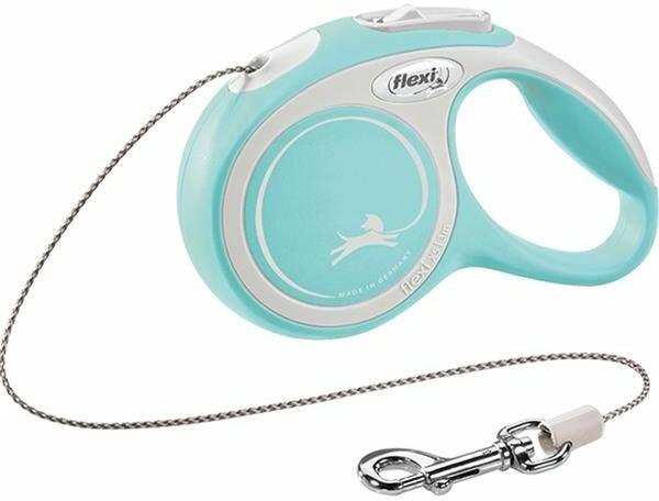 Flexi New Comfort XS zsinóros – Selymes műanyag markolatú, komfortos fogást biztosító, felcsévélhető automata zsinórpóráz kistestű kutyáknak 8kg testsúlyig. Könnyű kivitel, összsúlya 110g. A kötél fényvisszaverő komponensű, krómozott karabínerrel. Maximális hossza 3 méter.