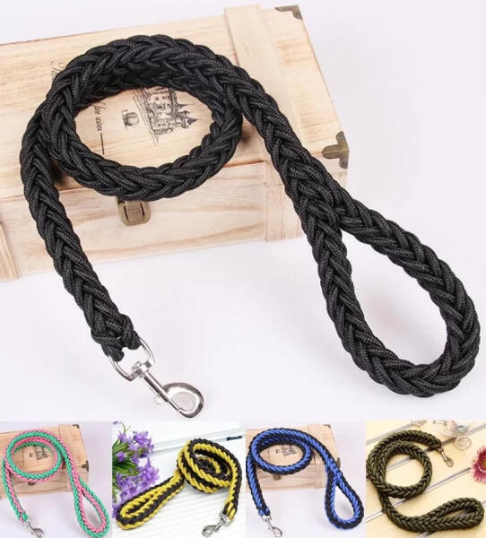 Erős, vastag fonott kutyapóráz, 120 cmA póráz a piacon kapható legerősebb fonott kötélből készült. A vastag kötél kényelmes és erős fogást garantál. A póráz könnyen tisztítható, mosógépben mosható. A vastag kötél tartósságot biztosít még a legnagyobb kutyák számára is. A magasfényű, nikkelezett fém karabiner strapabíró, forgási tartománya akár 360 fok. E