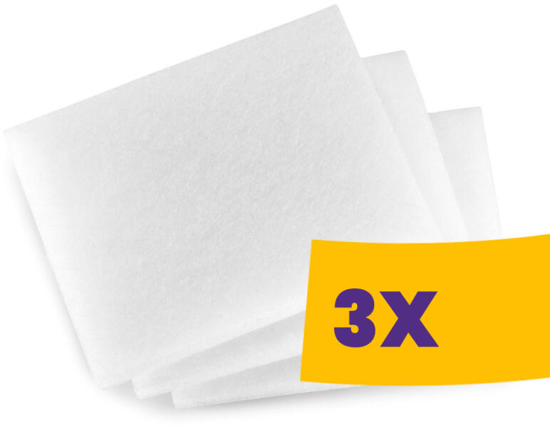 Motorvédő szűrő, cserélhető filc makacsabb szennyeződésekhez. SPECIFIKÁCIÓKMűszaki adatokMennyiség (Darab(ok)) 3Szín FehérMéretek (hosszúság × szélesség × magasság) (mm) 100 x 100 x 20