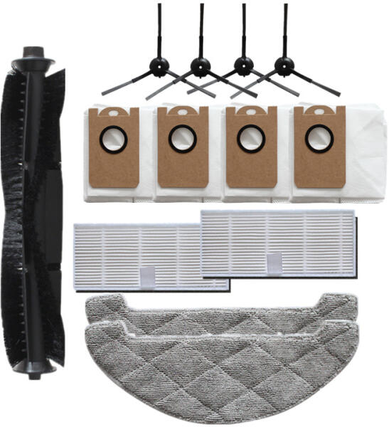 Csomag tartalma: 4 db 3 ágú fekete oldalkefe 1 db főkefe 2 db hepa szűrő 4 db porzsák 2 db mosható mop Kompatibilis modellek: Viomi S9
