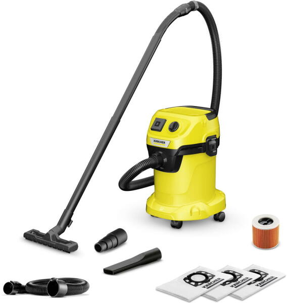 Kärcher WD 3 P V-17/4/20 Extension száraz-nedves porszívó (1.628-178.0) A WD 3 P V-17/4/20 hosszabbítós nedves és száraz porszívó a standard készülékhez képest 1 , 5 méter hosszú hosszabbítótömlő vel és összesen 3 gyapjúszűrőzsák kal is rendelkezik. A mindössze 1000 watt teljesítmény felvételű készülék Clips padlófúvókával, robusztus 17 literes műanyagtartál