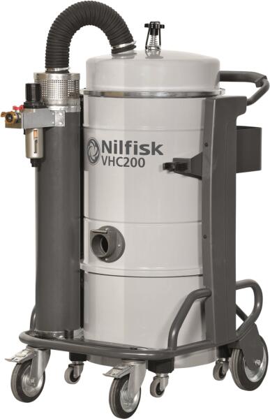 Sűrített levegős porszívó külsőleg felszerelt Venturi csővel rendelkezik. Nagy felszívó erő és erős vákuum jellemzi. A VHC200 modell kompakt és ergonomikus, ezért könnyedén mozgatható a termelési területek között, még kemény talajon is. A nagy kerekek és a fogantyú biztosítja a gyors és könnyű mozgást, míg a tartály görgőket és praktikus fogantyút tartalmaz, a