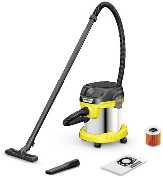 Az energiatakarékos KWD 2 S V-15/4/18/C 15 literes rozsdamentes acéltartállyal, fekete készülékfedéllel, fúvófunkcióval, patronos szűrővel, 4 m-es kábellel és 1,8 m-es szívótömlővel nyűgöz le. A KWD 2 S V-15/4/18/C kompakt kialakításával, kiváló szívóteljesítményével és energiahatékonyságával - mindössze 1000 wattos fogyasztásával - nyűgöz le. Ez a készülé