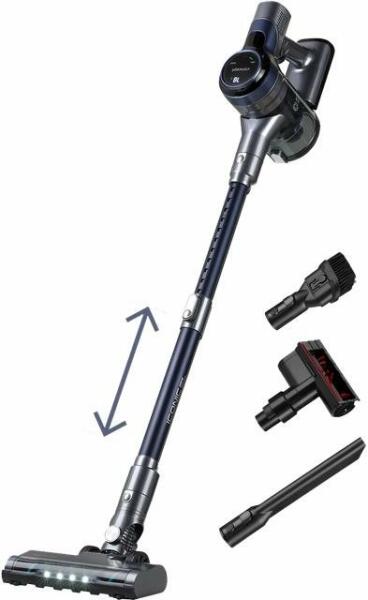 Jellemzők: 3 eszköz az 1-ben Ciklonos szűrőrendszer állandó szívóerővel HEPA szűrés a finom por, pollen, penész és mikroorganizmusok felfogására Két teljesítményfokozat közül választhat, ha álló porszívóval porszívózik LED skála, amely az akkumulátor töltöttségi szintjét mutatja Megvilágított padlófúvóka LED-ekkel Átlátszó tartály szennyeződések számár