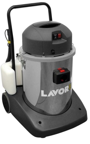 Nagyteljesítményű kárpittisztító berendezés kétfokozatú hangtompított motorral, acél vázzal és kocsival, széles, stabil és ütésálló talppal, biztonsági úszószeleppel a motor védelmére, csővel a koszos víz kiürítésére, valamint külön vezérlőkkel az elszívó motor és a szivattyú kapcsolásához. Ezt a kárpittisztító gépet autók belsejének, kanapék, szőnye