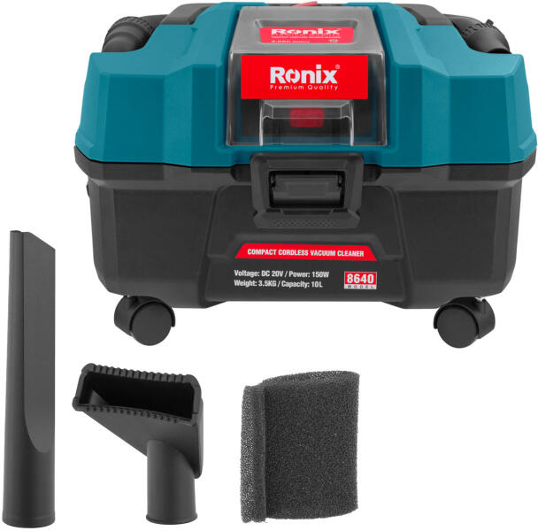 Tennant V-CAN-16 porszívó Professzionális száraz porszívó Csendes, nagy teljesítményű száraz porszívó nagy tartálykapacitással. Sebességszabályozóval, mely biztosítja a zajszint állítását is. Zsák telítettségét mutató kijelző. Lecsatolható kábellel. Teleszkópos szívócsővel. Standard három szintű szűréssel, HEPA szűrővel. Opció: tartozék tartó. Alaptartoz