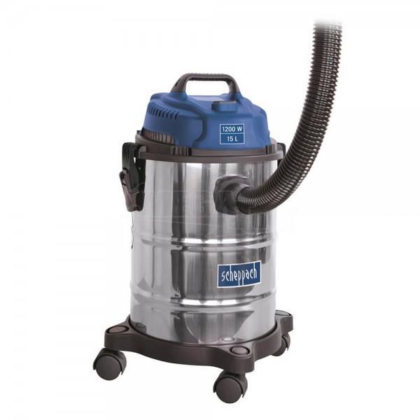 Gyártó: Scheppach Modell: ASP 15 Leírás: A Scheppach ASP 15-ES nagy teljesítményű, könnyű, kompakt, kiválóan felszerelt 15 literes, nedves – száraz porszívó. Gazdagon felszerelt gép. Masszív rozsdamentes acél tartállyal, négy forgó görgővel és nagy fogantyúval rendelkezik, amely megkönnyíti a kezelhetőségét. A kábel és a tömlő hosszúságának köszönhetően a g