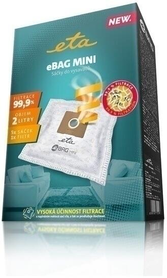 CSOMAG TARTALMA: 5 DB MIKROSZÁLAS PORZSÁK+ 1 DB FILTER. GYÁRTÓ: ETA. Méretek: Lyuk átmérő: 46mm. Lyuk távolság: 26mm. Magasság: 98mm. Szélesség: 108mm. Zsák hosszúság: 220mm. Zsák szélesség: 255mm. A mikroszálas zsák a porzsákok legújabb fejlesztése. Többrétegű, rugalmas, nem szakad ki, könnyen rögzíthető. Kiszűri az apró porrészecskéket, poratkákat, polleneket.