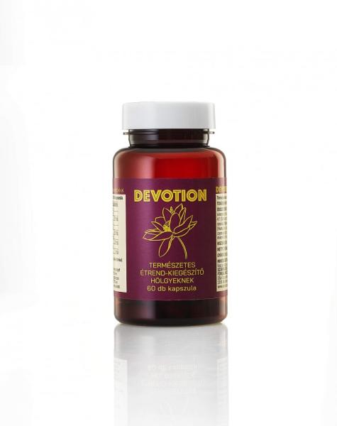 Devotion egy természetes étrend-kiegészítő készítmény, speciálisan nőknek kifejlesztve. Összetevőinek köszönhetően hozzájárulhat a nők hormonegyensúlyának fenntartásához, valamint a fizikai és szellemi jólétéhez és regenerációjához. Kiszerelés: 30 x 2db kapszula. Nettó tömeg: 34,29g. Adagolás: Maximum napi 2 x 1 kapszula bevétele javasolt, min. 2dl folyadékkal t