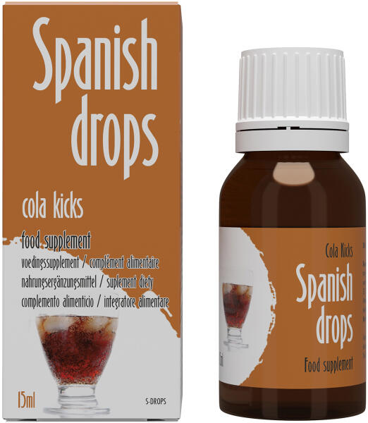 A Spanish Drops Cola Kicks a kóla izgalmas ízével mindent megad az extra izgalmas élvezethez. Az energetizáló cseppek többek között L-arginint tartalmaznak, és a C-vitaminnak köszönhetően hozzájárulnak a szexuális teljesítőképességhez azáltal, hogy aktiválják a szervezet természetes energiáját, így több vágy élhető át. A Spanish Drops Cola Kicks által érzett extra
