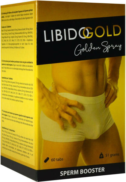 Olyan férfiak számára, akik minden orgazmusnál nagy mennyiségű spermát akarnak felszabadítani. A Libido Gold Golden Spray természetes összetevői serkentik a sperma termelését és a sperma minőségét.