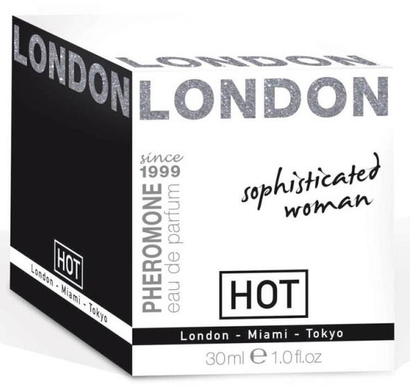 HOT Pheromon Parfum LONDON sophisticated woman-30ml. Kellemes virágos nem túl tolakodó illat(lemon). Szexuális csalógatóanyag hölgyek számára, akik vonzani akarják a férfiakat. Termékismertető : kedvcsinálóként hat a férfiakra. Közvetlen környezetében minden férfiban olyan benyomást kelt, hogy önnek ellenállhatatlan erotikus kisugárzása van. A feromonok szexuális csaloga