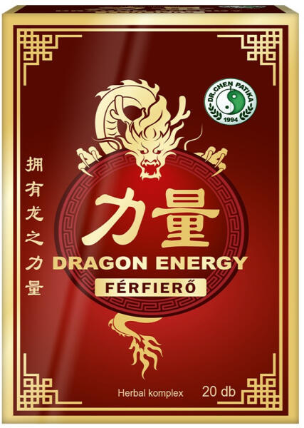Dr. Chen dragon energy férfierő kapszula 20 db Gyógynövényeket, B6-vitamint, cinket és szelént tartalmazó étrend-kiegészítő kapszula. A maca kivonat támogathatja a fizikai és szellemi teljesítményt, a vitalitást. A rózsagyökér hozzájárulhat a szív- és érrendszer normál működéséhez, támogathatja a szervezet alkalmazkodását az érzelmi stresszhez, a fizikai erőfesz