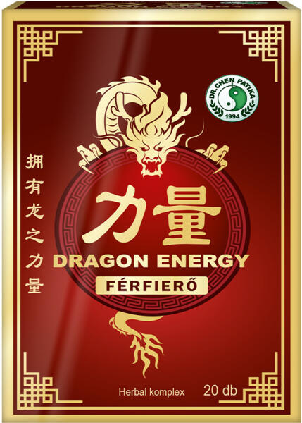Dr. chen dragon energy férfierő kapszula 20 db Dragon Energy Férfierő Gyógynövényeket, B6-vitamint, cinket és szelént tartalmazó étrend-kiegészítő kapszula Férfiak számára a szexuális aktivitás fenntartásához MACA kivonattal A maca kivonat támogatja a fizikai és szellemi teljesítményt, a vitalitást, hozzájárul a természetes szexuális aktivitás fenntartásához. A ró