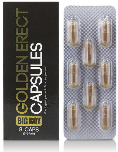 A Big Boy Golden Erect egy étrend-kiegészítő, amely támogatja a férfiak merevedési képességét és szexuális jólétét, olyan összetevőknek köszönhetően, mint a Panax Ginseng, Guarana és Ginkgo Biloba. A természetes kivonatok és vitaminok aktiválják a természetes szexuális energiát és támogatják a férfi potenciát. A Big Boy Golden Erect erőt ad a nagyobb élvezethez.