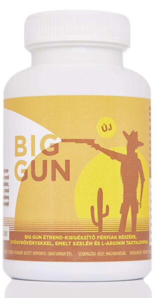 Big Gun étrend-kiegészítő férfiak részére, gyógynövényekkel, emelt szelén és l-arginin tartalommal kapszula 30 db A Big Gun étrend-kiegészítő férfiak számára készült, amely 9 féle növényi kivonattal és vitaminnal, köztük szelénnel és L-argininnel támogatja a sperma minőségének és mennyiségének javítását, hozzájárulva a normál termékenység fenntartásáho