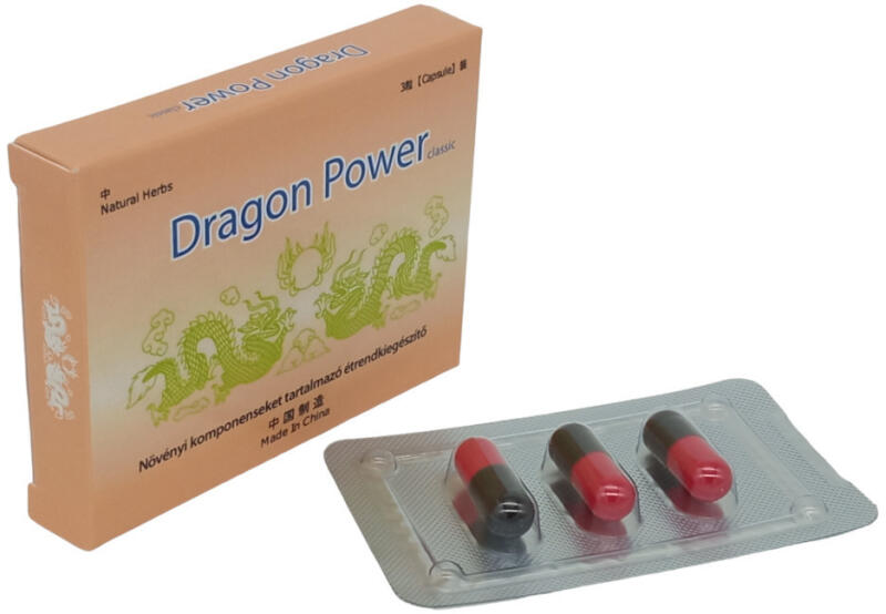 Dragon Power Classic kapszula (3 db) A régen ismert termék visszatért! A kínai mitológiában a sárkányok az erőt és a magabiztosságot szimbolizálták, így nem véletlen hogy ez potencianövelő kapszula is hasonló erényeket biztosíthat férfi használói számára. Elősegítheti a stabil erekció létrejöttét. Gyors felszívódású, természetes összetevőinek köszönhetően,