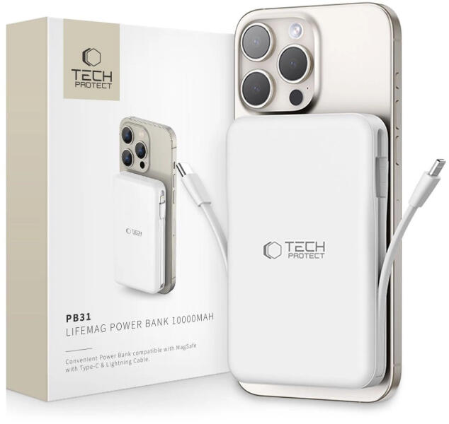 A Tech-Protect PB31 LifeMag egy könnyű és kompakt hordozható töltő, amely kompatibilis a Magsafe technológiával és amelyet fejlett funkcionalitás és modern dizájn jellemez. 10000mAh kapacitásával elegendő energiát biztosít a mobileszközök többszöri feltöltéséhez, függetlenül attól, hogy hol tartózkodunk. Kimeneteinek köszönhetően egyszerre különböző eszközöket