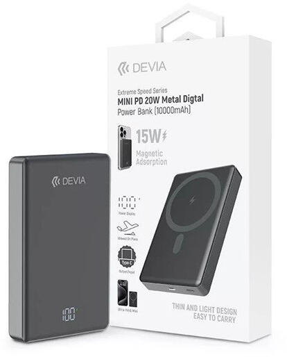 Devia ST107939 Extreme Speed Series Mini Metal Digital PD 20W 10.000 mAh szürke powerbank