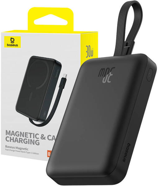 Baseus Magnetic Mini PowerbankBaseus MagSafe Magnetic Mini Powerbank 10000mAh, 30W (fekete)Töltsd fel eszközeidet könnyedén a Baseus Magnetic Mini segítségével. Ez a powerbank USB-C porttal rendelkezik és támogatja a vezeték nélküli töltést. 10 000mAh kapacitással büszkélkedhet, és LED kijelzőkkel rendelkezik, hogy bármikor nyomon követhesse az akkumulátor állapotát. Támog
