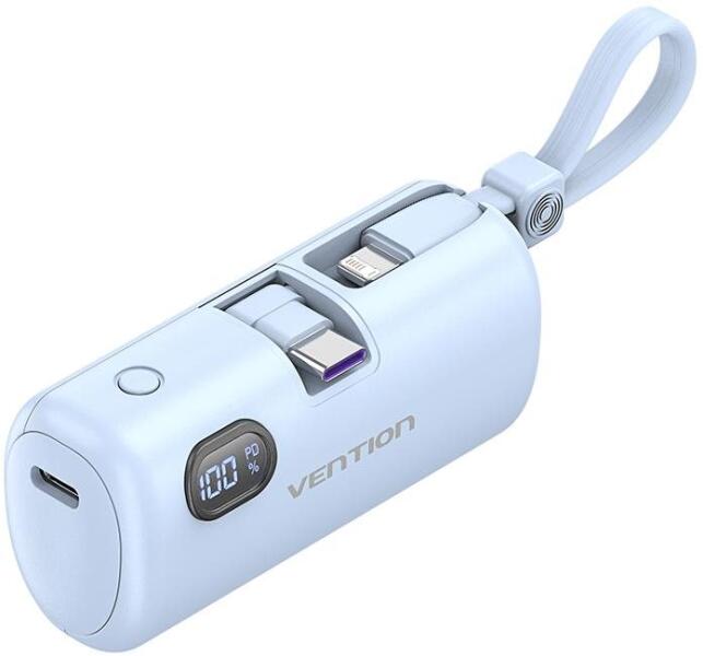 Hordozható powerbank, 30 cm hosszú Type-C - USB-A kábellel